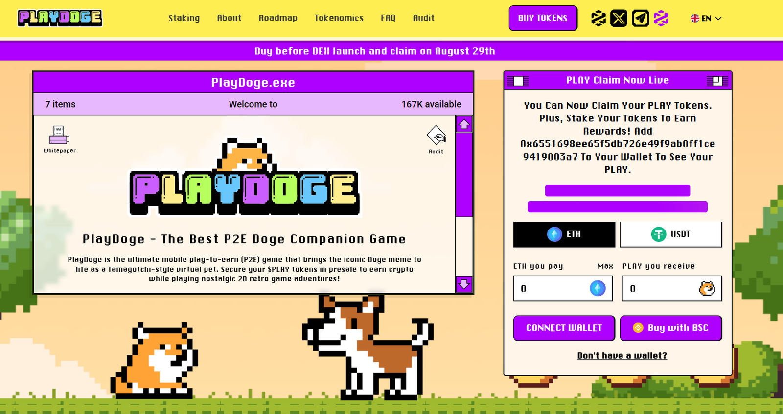 PlayDoge’s P2E game presale raised $4.5 million, per CoinCentral, with $PLAY tokens rewarding gameplay. A Hyderabad gamer’s Reddit post, with 850 upvotes, gained 180% on a P2E presale. CoinGecko reports PlayDoge’s Tamagotchi-style mechanics, with 9x ROI. Play the beta for eligibility. Follow @PlayDoge.