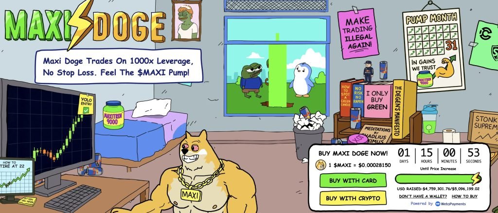 Maxi Doge is getting attention in that context. It leans fully into the leverage-trader meme, and the presale is sitting around $0.0002815 with roughly $4.75M raised, getting close to the $5M milestone that often brings more visibility and faster inflows.