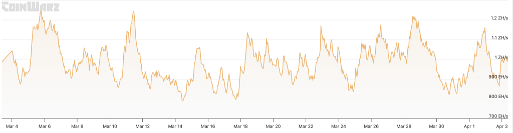 Bitcoin mining difficulty dropped from approximately 145 trillion to 133 trillion on March 20-a 7.7% decline-while network hash rate fell from 1,160 exahash to roughly 990 exahash as of Friday.